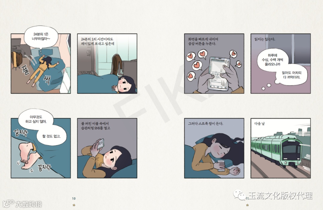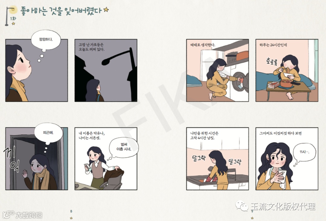 本书中的尤娜有一天大扫除时,在衣柜里发现了一本小学时写的日记本。读一读一读日记本,隐约地回忆起来,小时候很喜欢写作。这样看来,没有一天完全一样的日子。有的日子头发格外好,有的日子运气好,公交车来得早,有的咖啡味道更好......是的,每天是一样的日常,但不知道明天会发生什么。