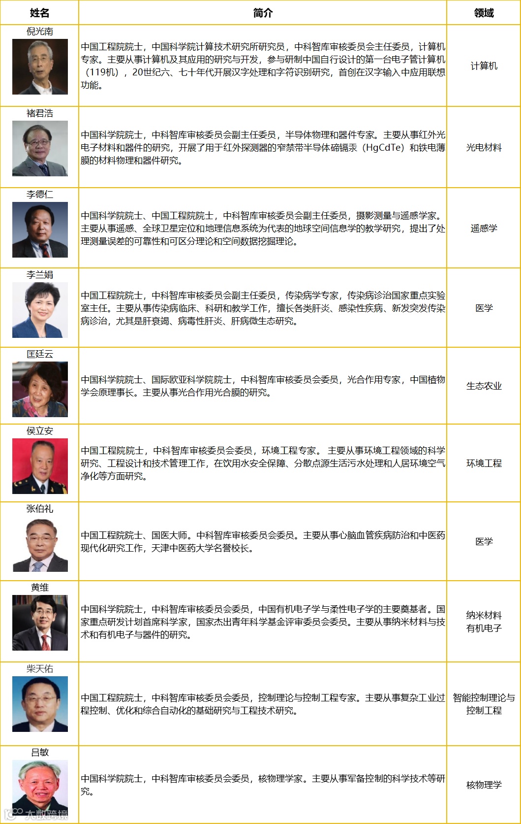 各领域院士(拟定)