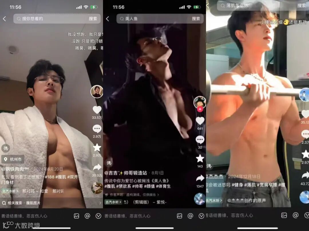抖音的腹肌男生数据也证明了女性观众的偏好,社交网络上的腹肌帅哥,精准圈住了“梦女”受众,颜值和身材成为海外短剧一大付费点!