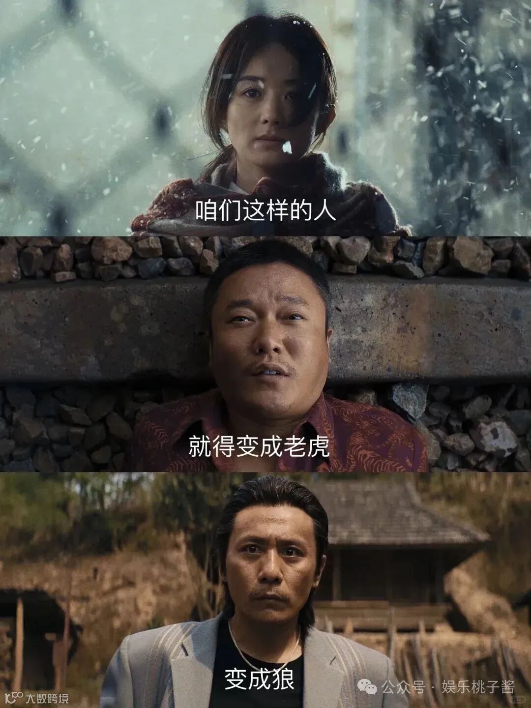 但《浴火之路》绝非无脑爽片,它在暴力的背后,隐藏着更深层次的思考。电影中,那些贯穿全片的意象,如赵子山和崔大路的“狼”“虎”形象,李红樱的“兔塑”,都不仅仅是形象气质上的考量,更触达了角色的灵魂深处。