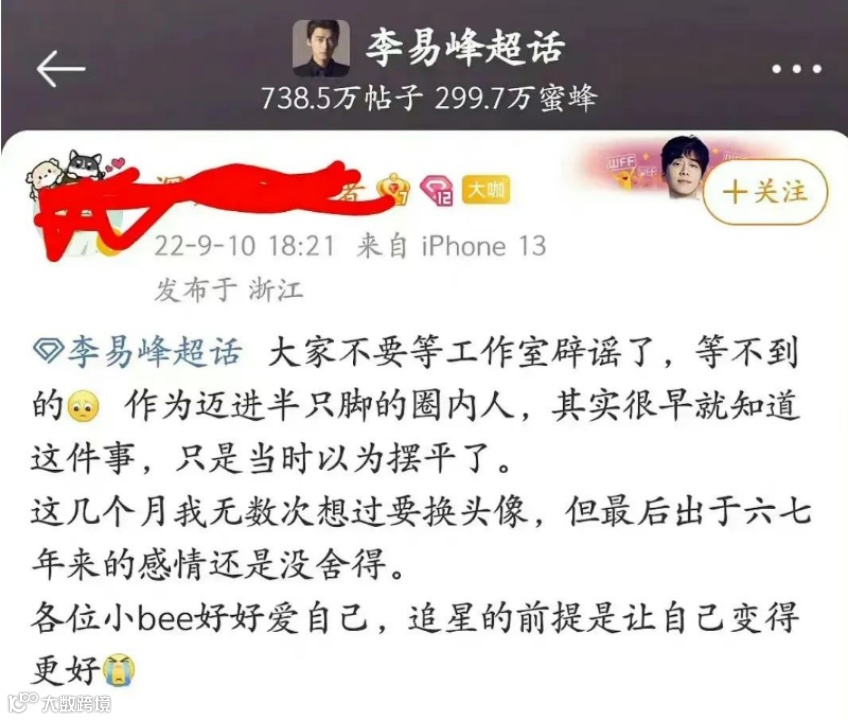 就连李易峰前老板姜磊,也发了一句“唉”。后来一位李易峰大粉也忍不住下场,发文称:“大家不要等辟谣了,等不到的。”