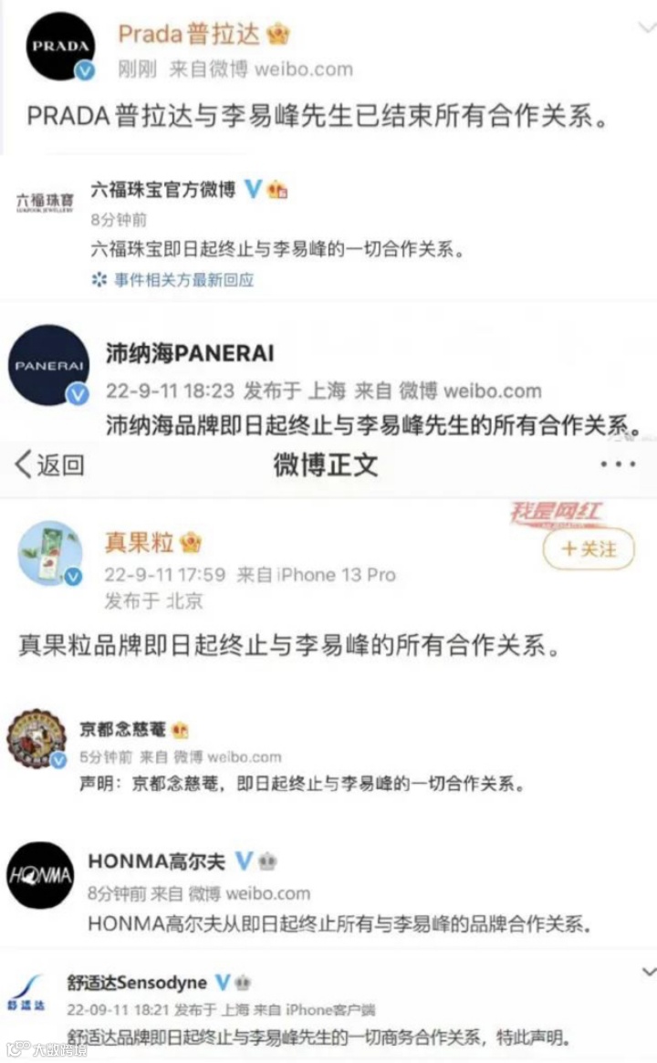 现在李易峰已经没有翻身的机会了。各大品牌纷纷发表声明终止与他的合作。事件一出,李易峰的正面形象瞬间崩塌。