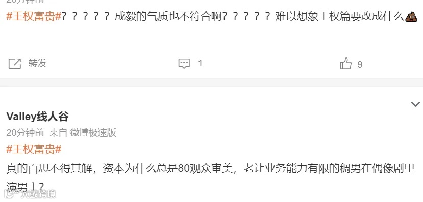 李一桐一直被网友评价都是挂件和体寒的角色,所以最大的争议不是集中在她身上,而是成毅饰演王权富贵的选角问题。漫粉直言王权富贵在国创里是实打实的流量,这个角色在我这里真的是帅气逼人的大帅哥,光站在那里就很挺拔的大帅哥!结果影视化之后是讲话口齿不清,没有少年气的一个男生来演绎的。