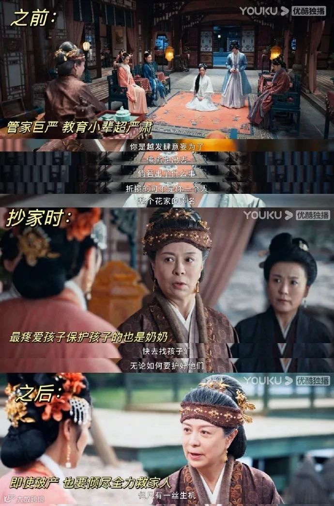 再比如,带着家人昂首阔步走上街头,虽经家产被查,却不失骨气。尽管这些都是花芷的建议,剧中却把功劳归于老太太一人。