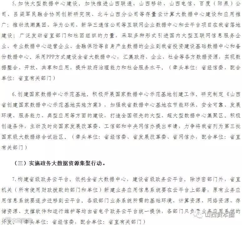 (三)实施“云殖山西”工程,促进大数据产业快速发展。