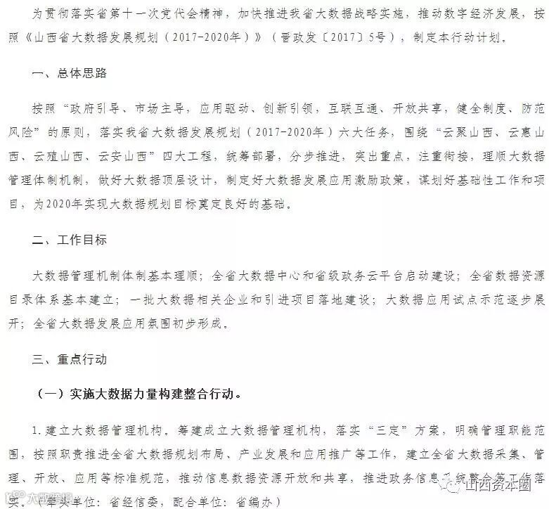 山西省促进大数据发展应用2017年行动计划