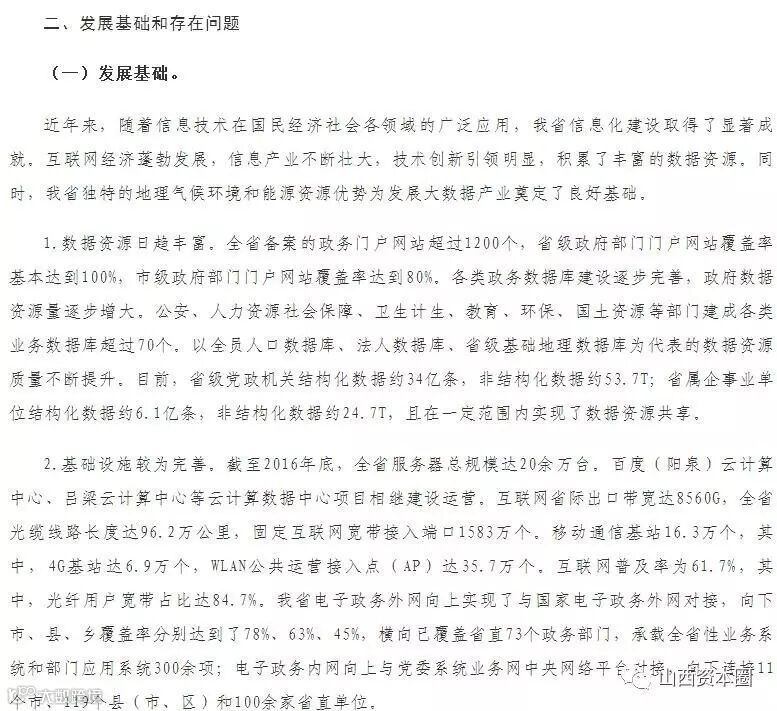 山西省大数据发展规划