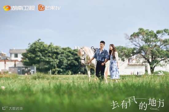 在预告片里,许红豆拉着行李箱爬坡走过的街道、奔跑过的油菜田、入住的有风小院;谢之遥牵马走过的草甸、露营的湖边……都让人无限神往。