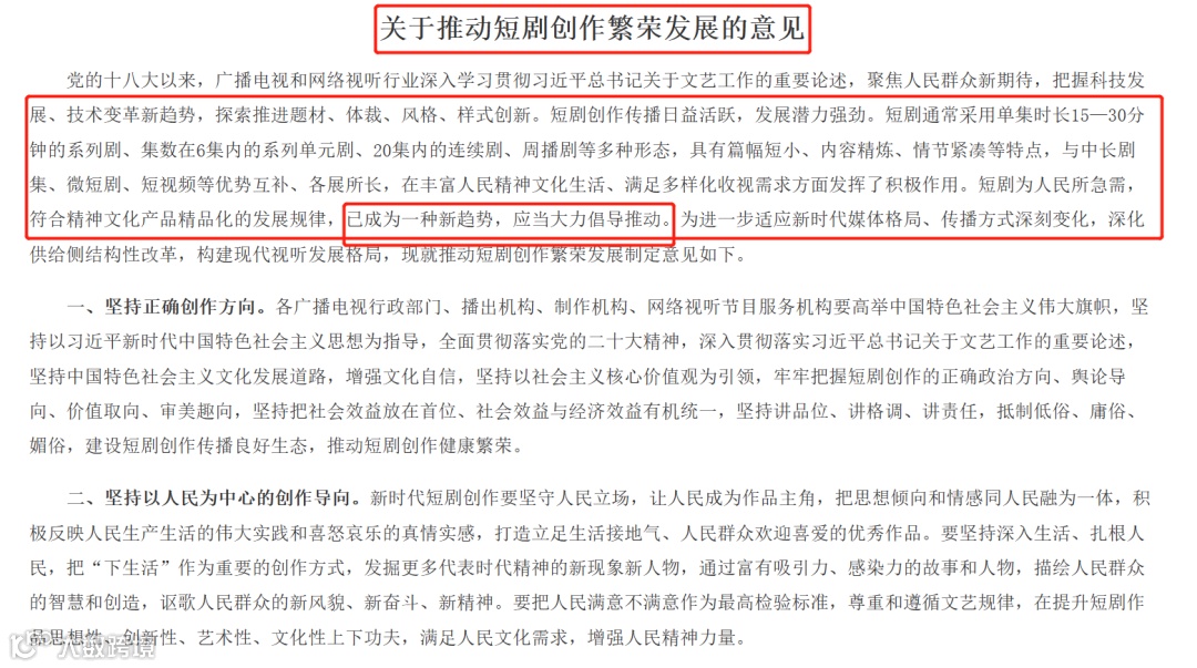 12 月 27 日消息,广电总局现已印发《关于推动短剧创作繁荣发展的意见》的通知。该文件指出,坚持好作品进入好平台、好时段,各电视台和网络视听平台要积极采购具有较高思想艺术水平的优秀短剧,在卫视黄金时段播出或在首页首屏上线。