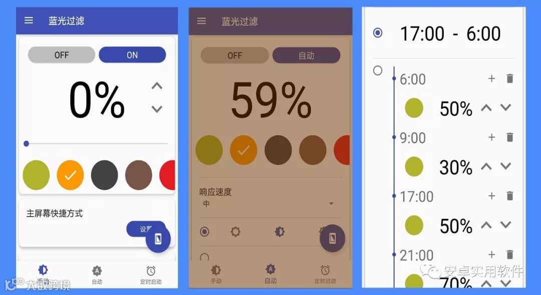 免费眼部护理应用,您可以轻松地减轻你的眼睛疲劳。这是简单而有效!只有你所要做的就是一旦启动这个程序。自然色的蓝光过滤器该应用程序的过滤器具有自然的色彩。所以,你可以阅读新闻,电子邮件,网站清楚。因为这个应用程序不暗淡的画面。这个程序调整屏幕颜色,减少蓝色的光,使您的眼睛疲劳。操作简便,可以很容易地打开或关闭调整设置。您可以调整设置应用程序的过滤器使用的透明度。您还可以选择颜色。打开或关闭快速,轻松地,您可以选择显示或隐藏过滤器的状态栏中。这很容易调整的设置,根据我在什么样的应用程序的时间。自动启动,您可以选择是否启动启动。5过滤器的颜色,您可以选择从5过滤器的颜色之一。