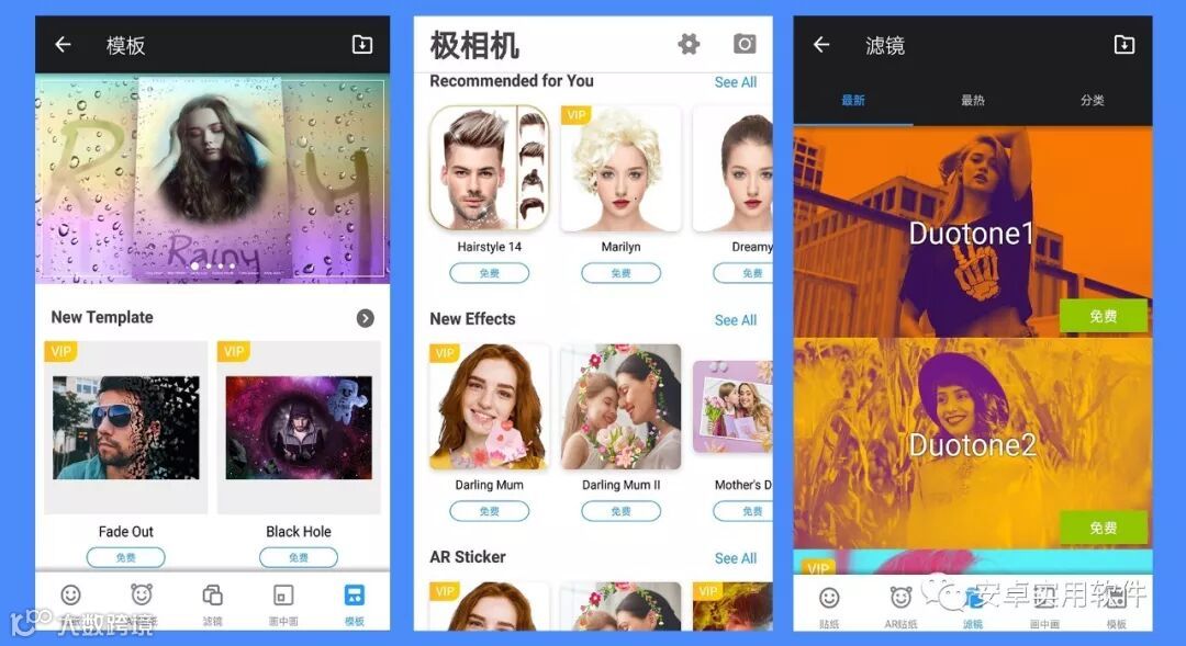 极相机性能极佳, 反应奇快,拍摄照片和录制视频的速度比系统相机还快。极相机支持实时滤镜,可以在捕捉美景前预览照片。还支持手势操作,左右滑动即可快速在视频和拍照之间切换。软件已经破解vip功能,所有滤镜特效及功能全部免费用,支持图像编辑,拼图,画中画等诸多功能!