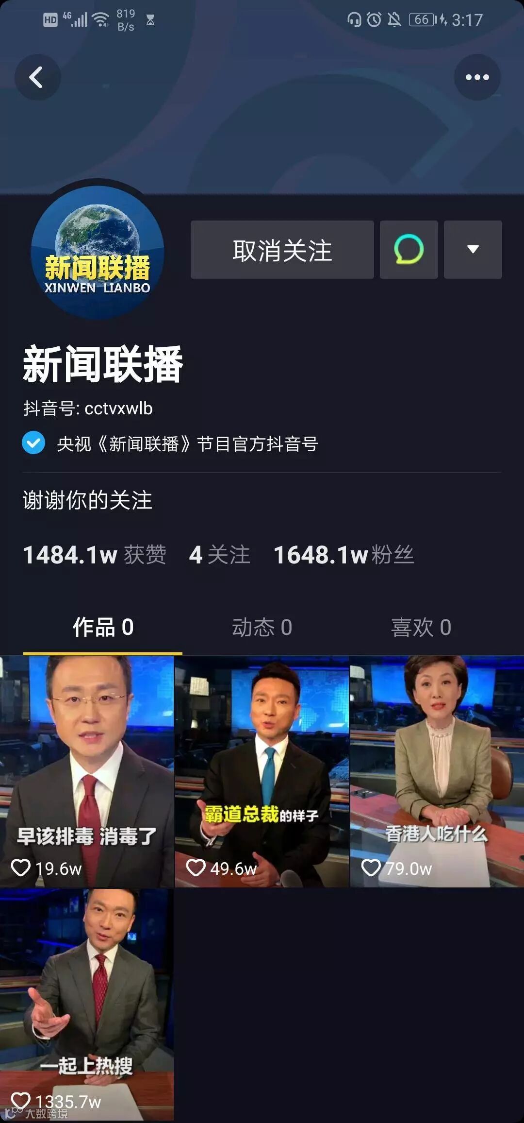 关注联播的抖音号,我们一起抖起来,一起上热搜。
