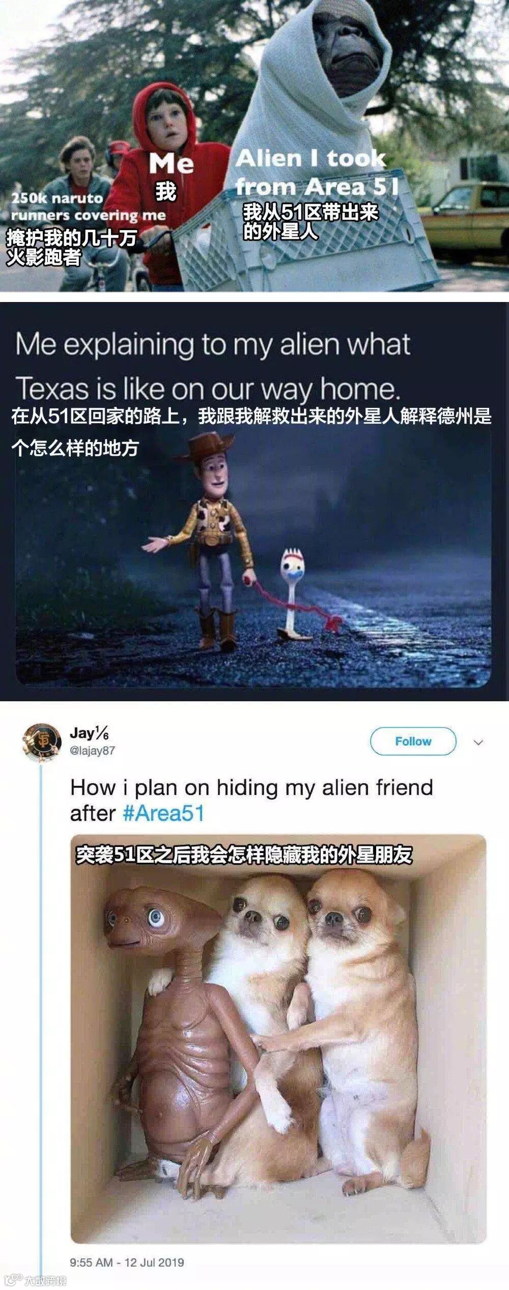 还调侃51区。
