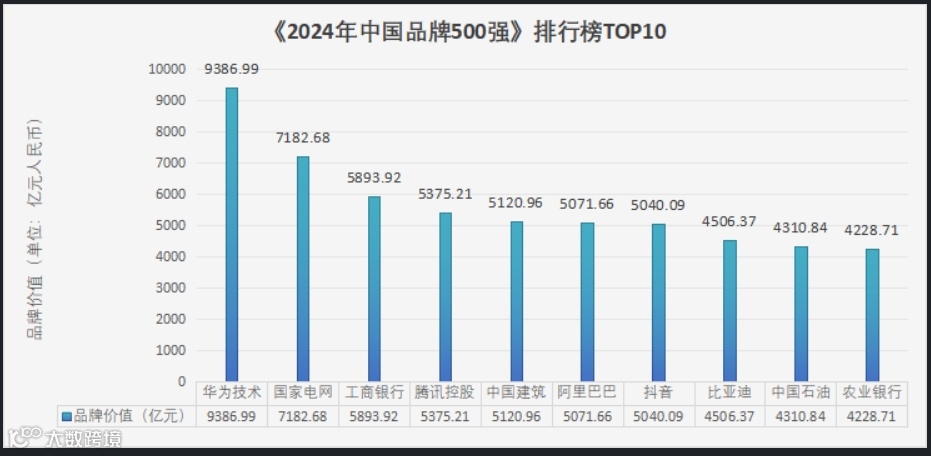 亚洲品牌研究院副院长关新峰发布“2024中国品牌500强”榜单,并依据榜单数据结果,从品牌价值总量、区域分布、行业分析等不同角度进行了解读。华为技术以 9386.99 亿元的品牌价值拔得头筹,国家电网紧随其后,品牌价值达到 7182.68 亿元,位列第二。中国工商银行、腾讯控股和中国建筑分别位居第三、第四和第五位,阿里巴巴、抖音、比亚迪、中国石油和中国农业银行等企业位居榜单TOP10。周大生、哈药、天能、太平鸟、顾家家居、贝壳集团、通鼎集团、上海煤科、运鸿集团等等一大批民族品牌也榜上有名。