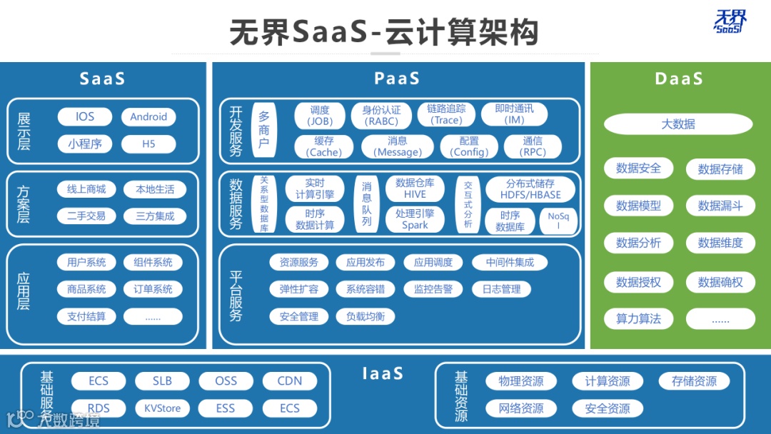 无界公司创新研发了数字化工具无界SaaS,涵盖了SaaS(软件即服务)、PaaS(平台即服务)、IaaS(基础设施即服务)等所有技术,同时通过集群化部署+k8s容器服务节点故障自动转移,避免出现故障时系统无法使用,实现了快速迭代、自动部署、伸缩兼容性、小程序部署、自动恢复、故障隔离等特点。此外,还搭建无界数据DaaS中心,保障数据存储、数据查询、数据分析、数据安全等,赋能企业更快更好地实现数字化转型升级。