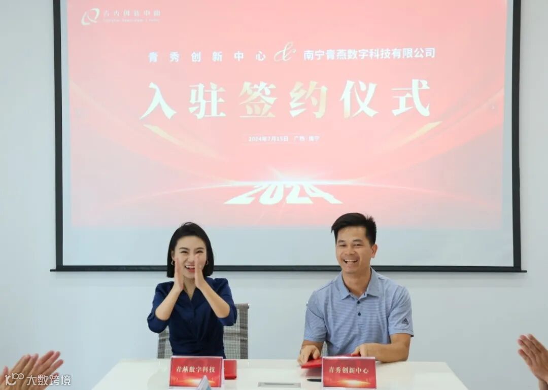 在热烈的掌声中,双方代表共同签署了入驻合作协议。这一刻,不仅标志着南宁青燕数字科技有限公司正式成为青秀创新中心大家庭的一员,更预示着双方将在数字化领域开展深度合作,共同探索更多可能,为更多企业带来数字化转型的福音。