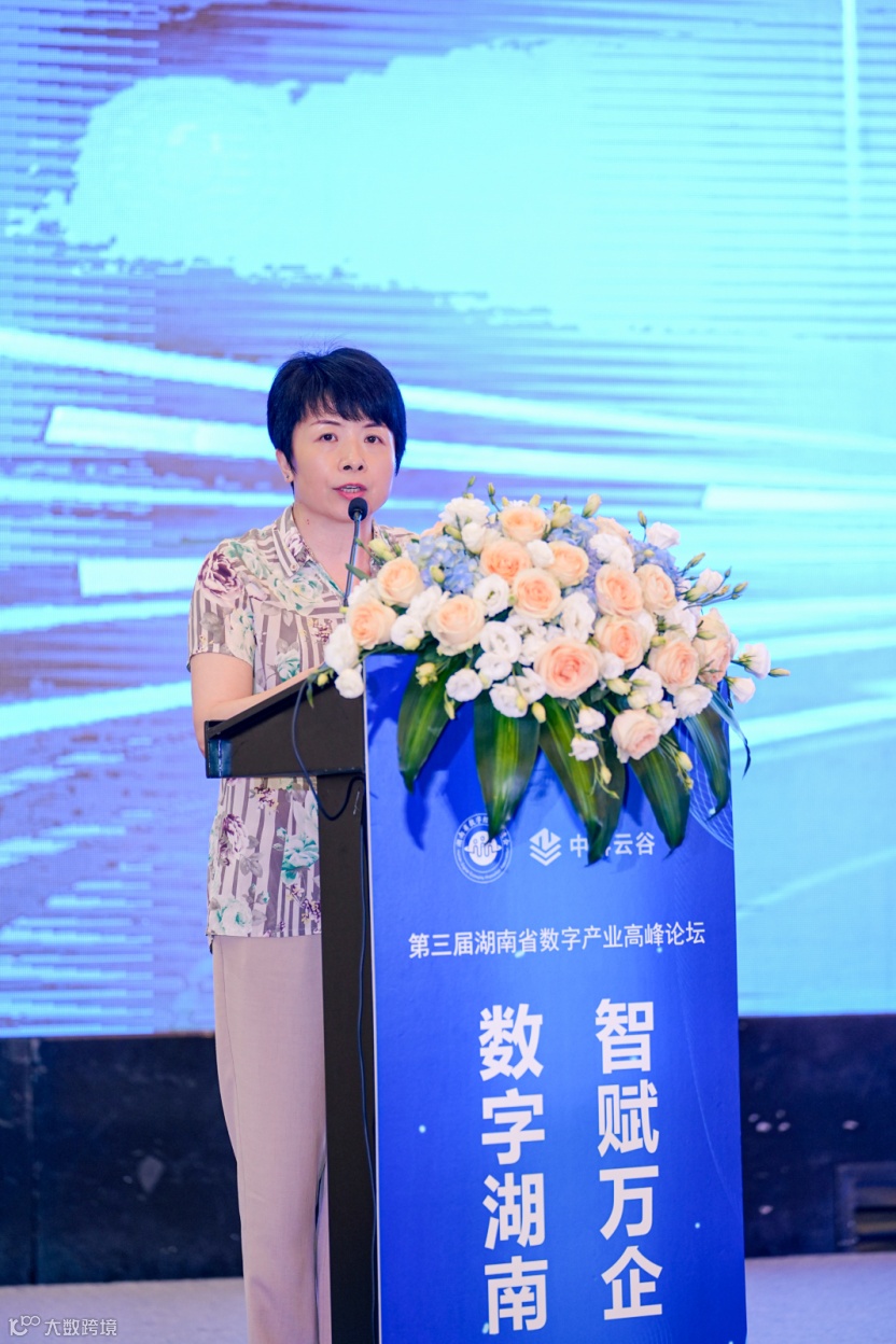 湖南省工业和信息化厅人工智能与数字产业处二级调研员许文琳为大会致辞。许处指出希望所有湖南的企业和湖南省数字经济促进会以“时不我待”的奋进姿态、奔跑状态,坚持上“云”用“数”,以数字化转型整体驱动生产方式、生活方式和治理方式变革。期待湖南企业各界在推动数字产业化、产业数字化上坚持创新引领、数字赋能,注重数字化转型产业层次改造升级,注重数字技术与制造业融合应用创新,注重数字化治理与基础建设的提升,成为数字化的践行者。