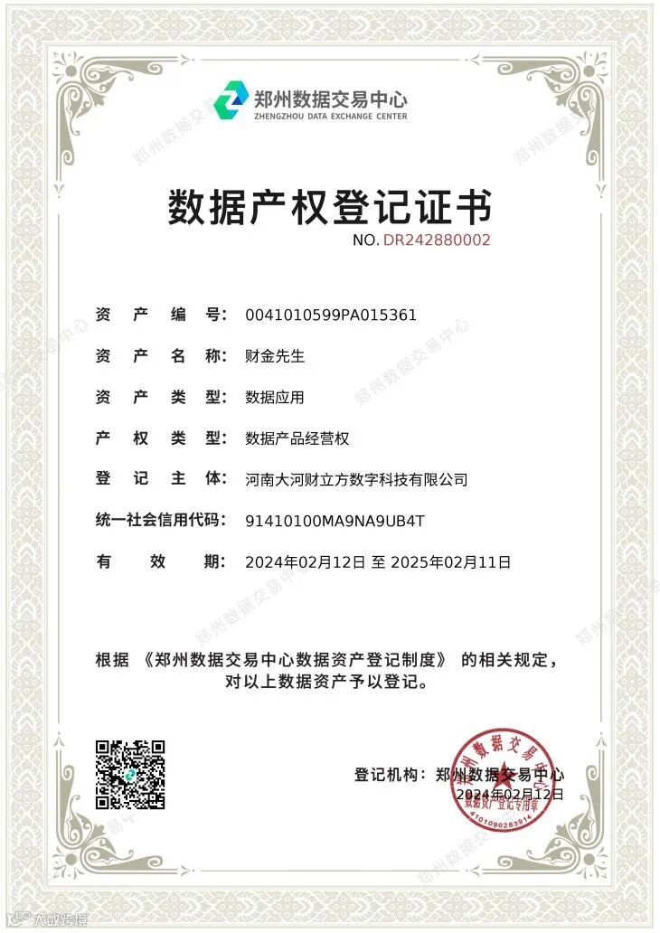 龙年春节期间,河南大河财立方数字科技有限公司(以下简称财立方数科)两项数据应用产品