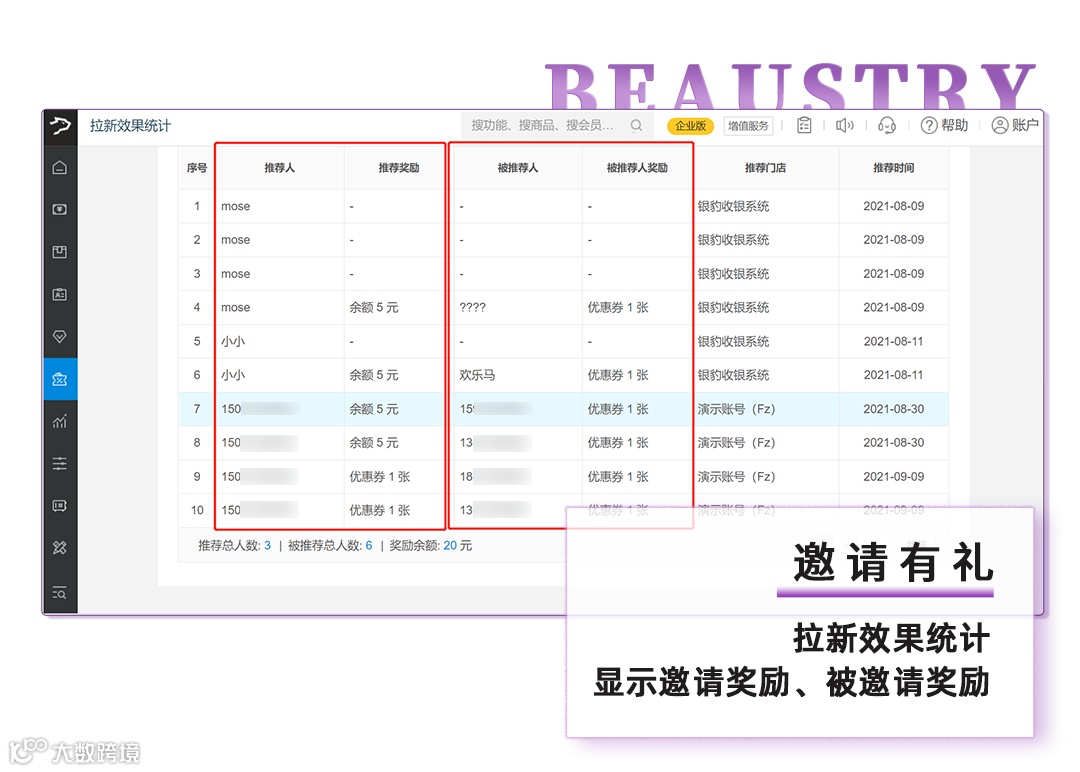 4、邀请有礼效果,显示邀请奖励、被邀请奖励