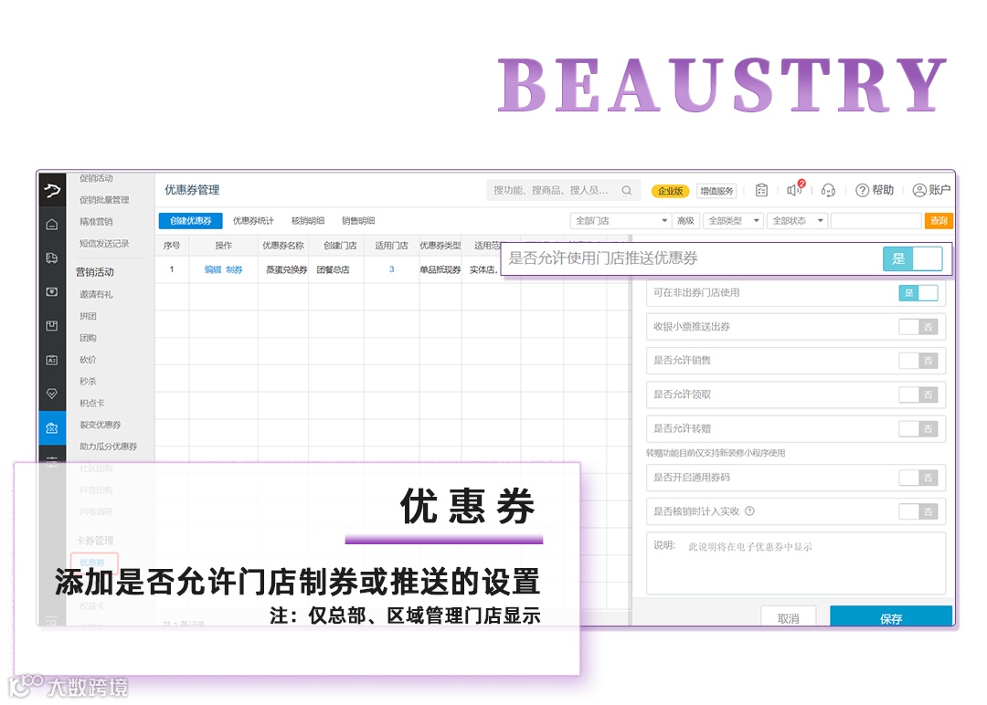 前提:仅总部、区域管理门店显示【是否允许使用门店推送优惠券】