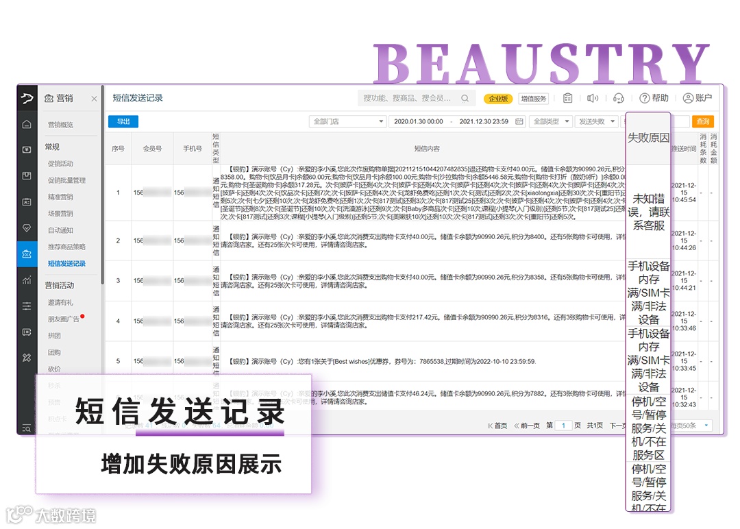 8、短信发送记录,增加失败原因展示