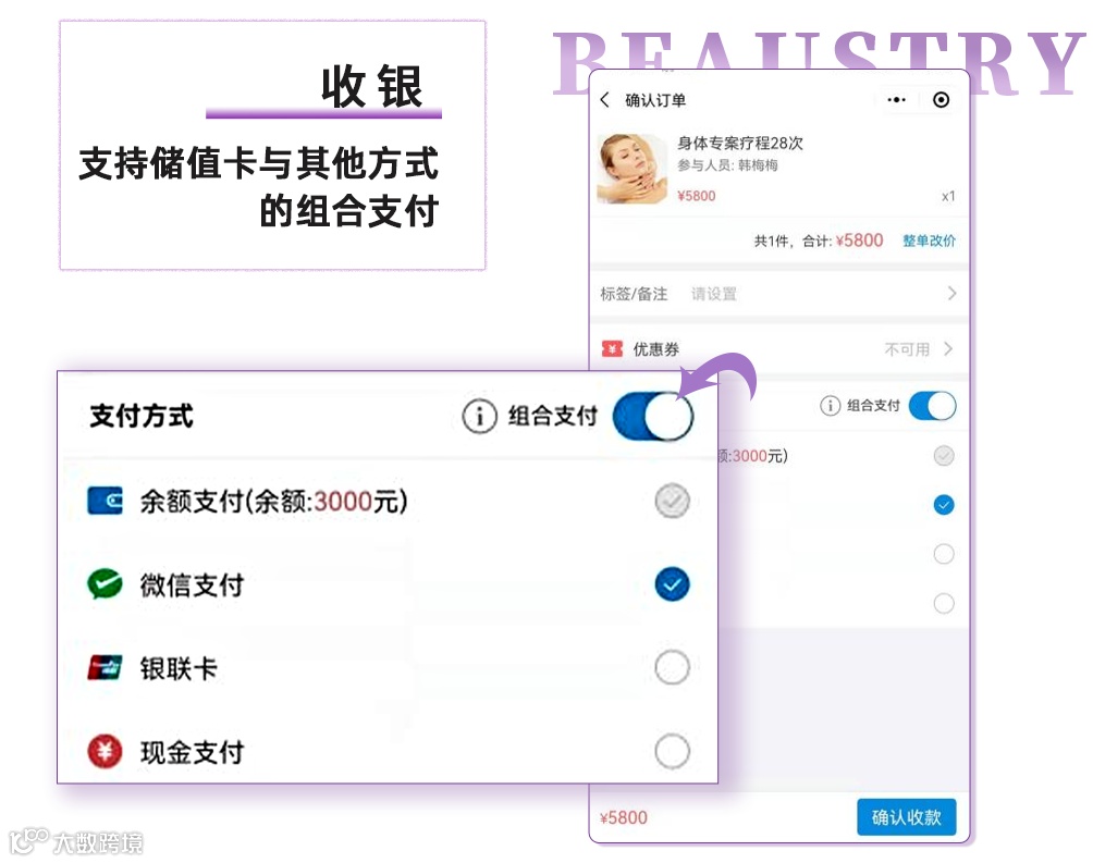 1、收银支持储值卡与其他方式的组合支付;
