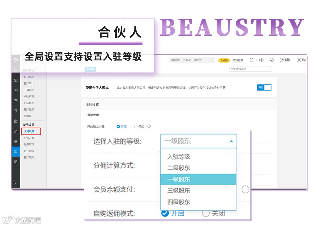 26、合伙人,全局设置支持设置入驻等级