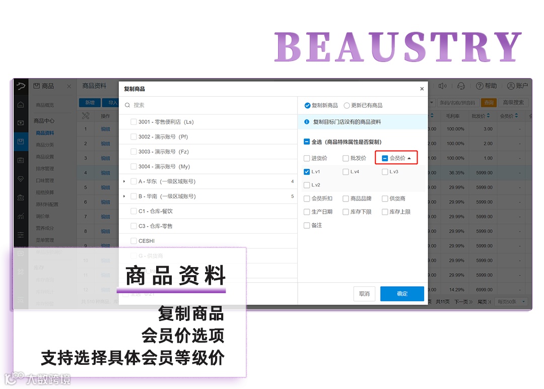17、商品资料-复制商品,会员价选项支持选择具体会员等级价