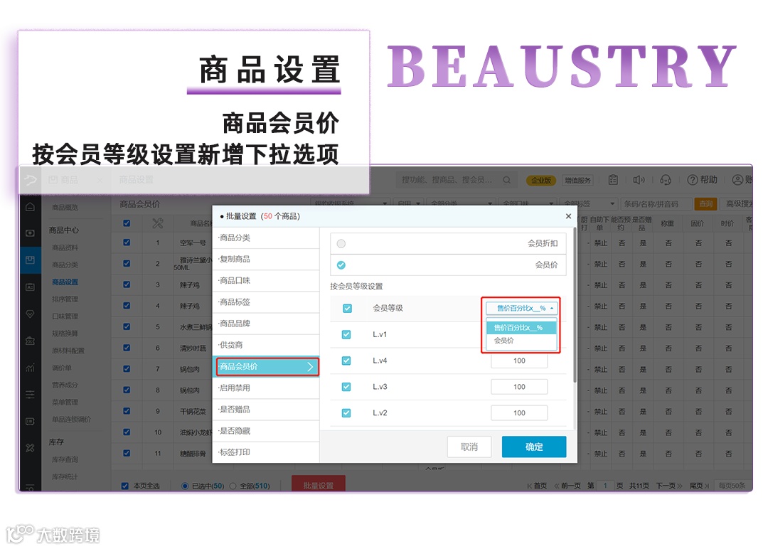 5、美业/艺培,网店商品资料去掉餐饮相关设置