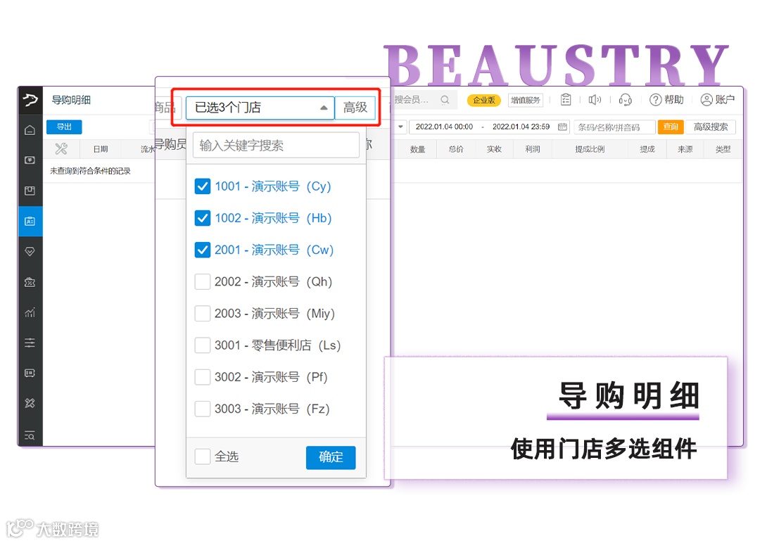 7、导购明细使用门店多选组件