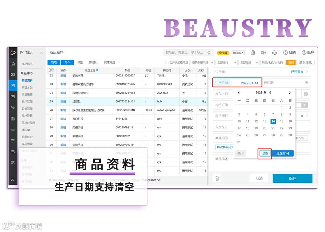 16、商品资料,生产日期支持清空