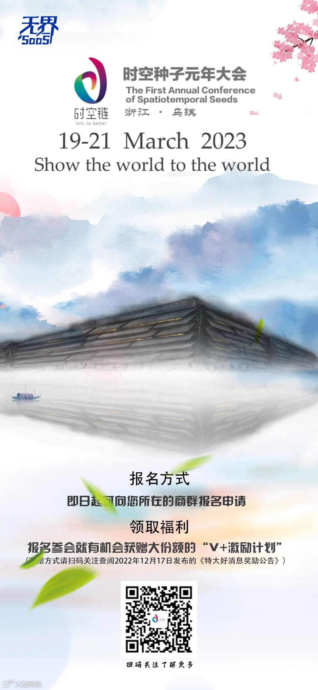 主题为“向世界展示世界 Show the world to the world”的时空种子元年大会将于3月19日-21日在乌镇互联网国际会展中心隆重举办。