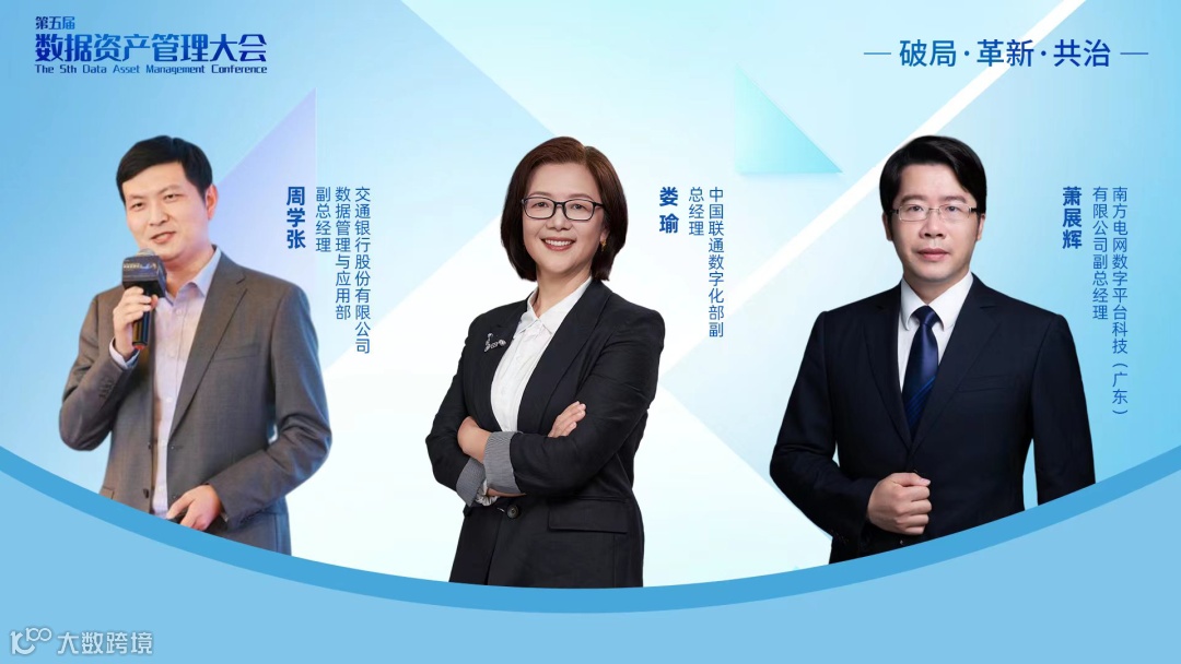 会上,交通银行股份有限公司数据管理与应用部副总经理周学张、中国联通数字化部副总经理娄瑜、南方电网数字平台科技(广东)有限公司副总经理萧展辉,分别围绕《商业银行数据管理与应用的实践》《数据要素注智赋能数字化转型 聚力打造“一个联通 一体化能力聚合 一体化运营服务”特色实力》《基于“责权利、量本利”的数据资产管理体系构建与应用实践》,发表了精彩的主题演讲。