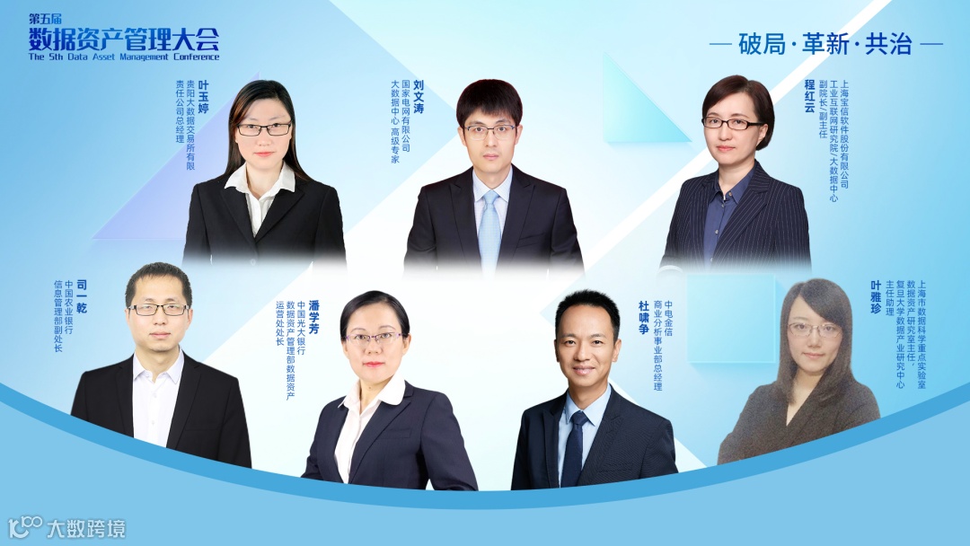 国家电网有限公司大数据中心高级专家刘文涛、中国农业银行信息管理部副处长司一乾、上海宝信软件股份有限公司工业互联网研究院副院长/大数据中心副主任程红云、中电金信商业分析事业部总经理杜啸争、中国光大银行数据资产管理部数据资产运营处处长潘学芳、贵阳大数据交易所有限责任公司总经理叶玉婷、上海市数据科学重点实验室数据资产研究室主任/复旦大学数据产业研究中心主任助理叶雅珍等,分别围绕《数据管理能力成熟度评估模型:数据治理之基》《宽表数据资产建设与管理》《中国宝武1+N大数据中心建设分享》《源启数据资产管理平台助力金融机构加速数据资产化过程》《商业银行数据要素市场化建设探索与实践》《数据交易所如何赋能数据商业模式新路径》《数据商品与数据商人》,发表了主题演讲。