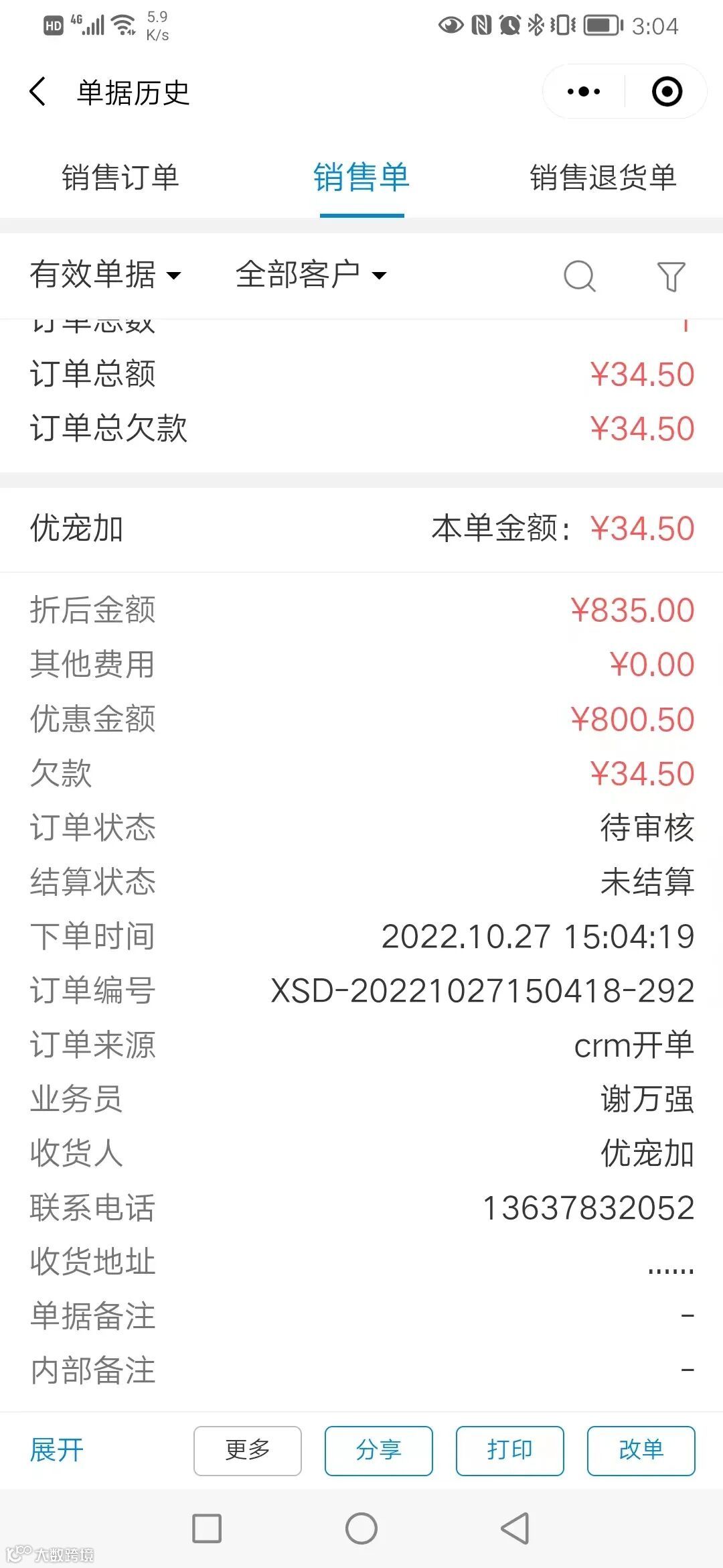 01.CRM开销售单,优惠金额支持小数