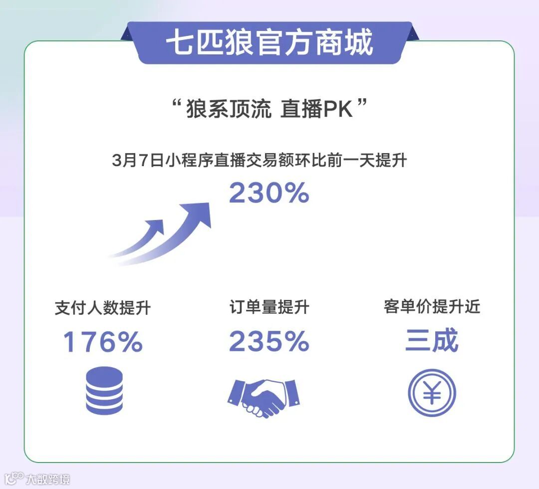 将水泼到服装上做性能测试,以设计理念、工艺制作为话题解析设计源点,针对不同客群精准推荐穿搭……七匹狼CEO李淑君更是带头直播了起来,其在与设计总监尼克在“狼系顶流狼T直播PK赛”中,通过互动畅聊、抽奖、满额送礼等丰富形式,让七匹狼实现销售与口碑的双赢。