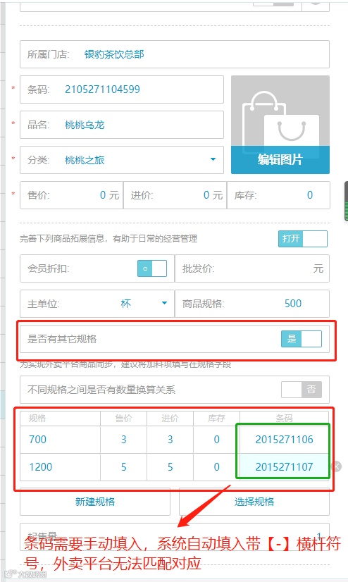 切勿使用系统自动匹配,自动匹配是带有【-】横杆条码