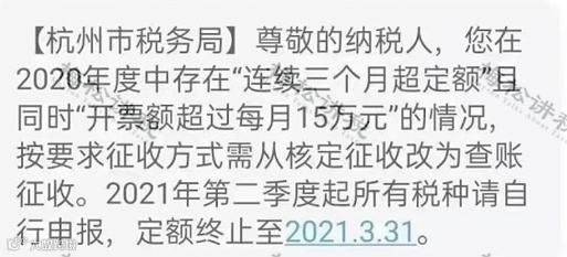 杭州税务局:对超定额和超开票额的纳税人由核定征收改为查账征收!