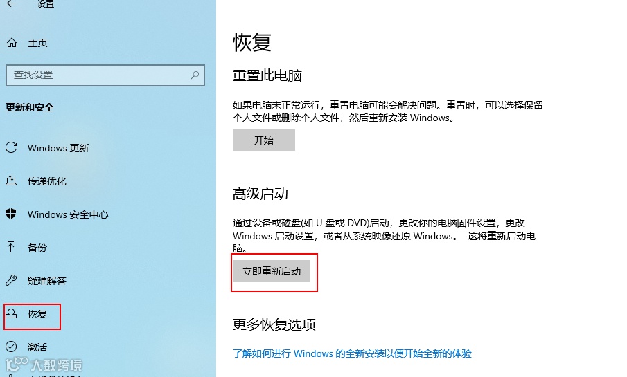 进入winre进行云恢复,能正常进入系统的可以通过设置>恢复>立即重新启动,如果无法进入系统的一般强制关机2-3次会出现高级启动菜单同样可以进入winre界面。