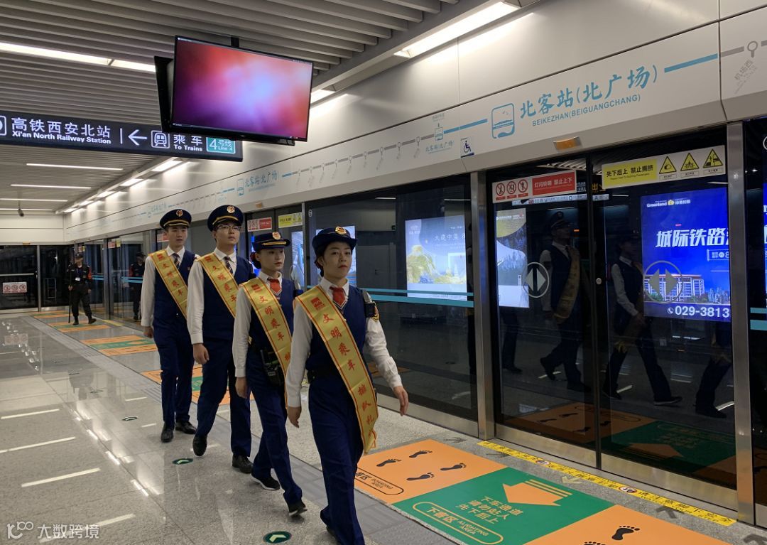 从机场城际换乘西安地铁4号线时(从机场向北客站方向),通过岛式站台便可直接换乘。
