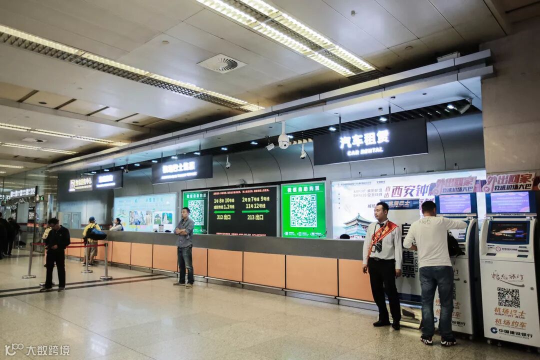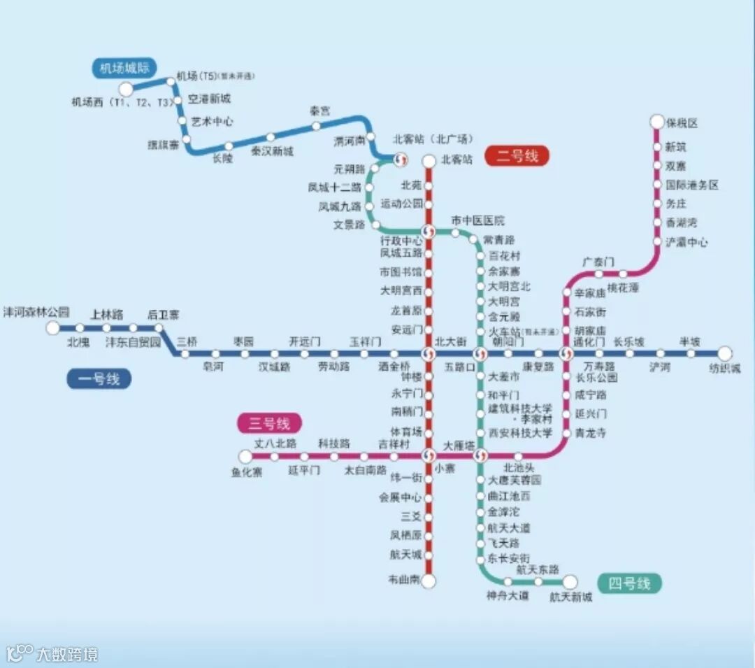 从机场城际转乘西安地铁2号线时,通过站台下至站厅层,出站后通过通道到达2号线站厅层。