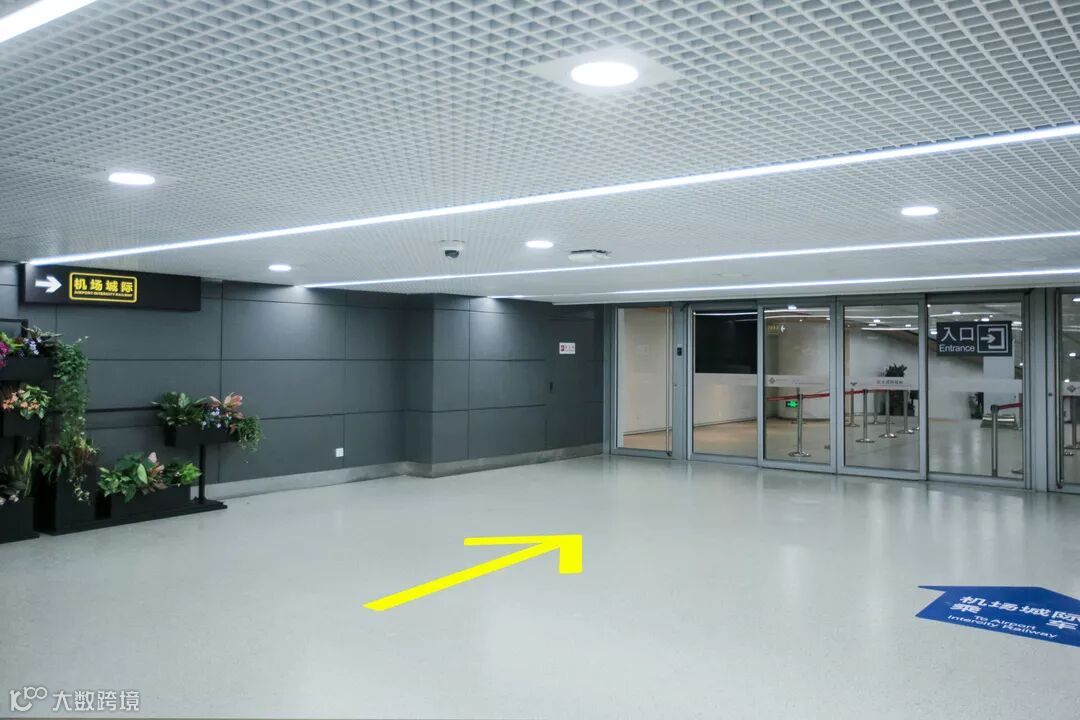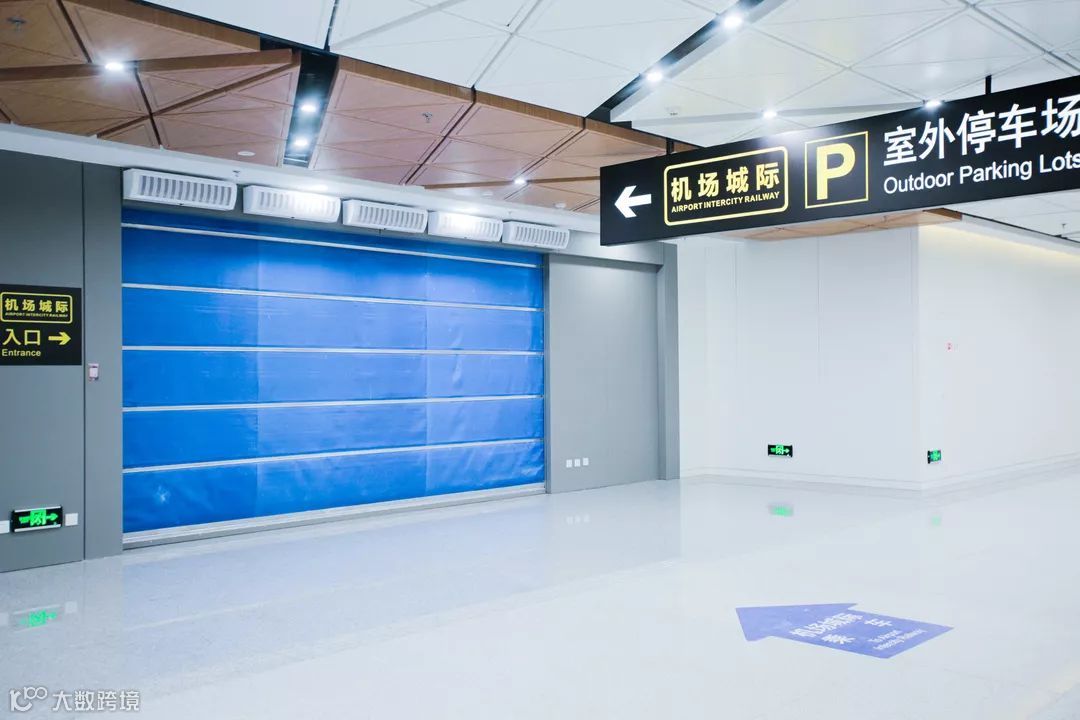 从高铁转乘机场城际时,通过通道至机场城际乘车。