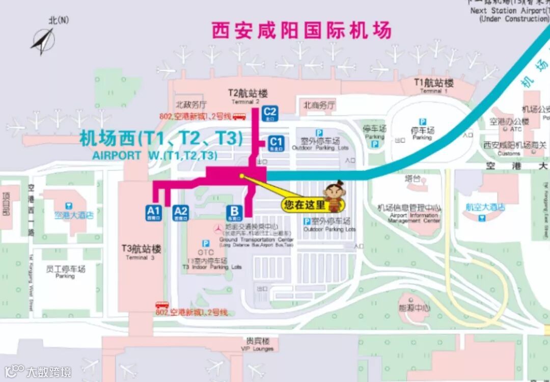机场西换乘T3航站楼,乘客由机场西到达站台下车,经过A2出入口进入T3航站楼。