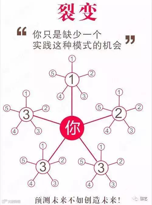 我喜欢拿这张细胞分裂图来比划,你看每一个人都可以裂变出新的资源,但是要如何裂变呢?