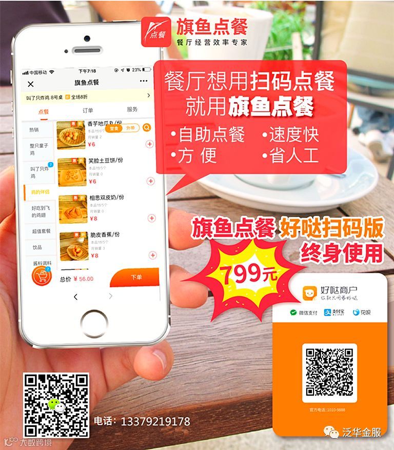 旗鱼扫码点餐,顾客只需扫码一点餐,对应的智能pos机都会自动打印,厨房也会分类打印,不需要再让服务员来回折腾,小票送来送去。既节省了人工,又减少客户下单等待时间。最新在原智能pos+扫码点餐套餐的基础上,专门推出了单独扫码点餐终身版,解决了小微餐饮店经营者担心生意不好,软件还要年年续费的额外困惑。