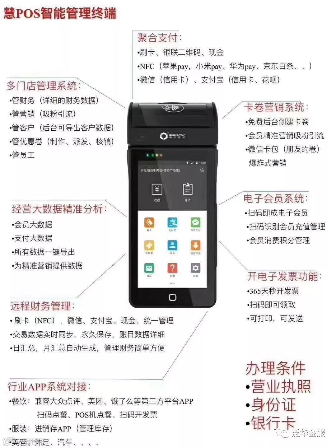 盒子科技慧POS突破了传统POS机对于银行卡类型的限制,支持磁条卡、IC卡、NFC等收款方式,同时也新增扫码收款,支持微信、支付宝、银联云闪付、京东白条、Apple pay等主流平台的条形码收付款,整个消费过程方便快捷,实实在在帮助商户提高了店铺的收款效率。在移动支付越来越普及的情况下,盒子科技的慧POS打通了多种收款场景,连接起线上管理和线下服务,可谓是行业内小微商户服务商的杰出代表。盒子市场有近百款应用APP软件,提供个性化专业化服务,如百度外卖、饿了么、美团商家版、旗鱼点餐等,多家跨国公司、著名上市品牌都已经使用且极为推崇,您家店铺换了吗?