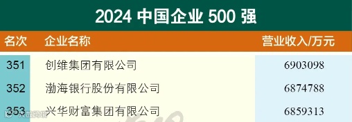 9月11日,中国企业联合会、中国企业家协会发布“2024中国企业500强”,创维集团以卓越表现再度上榜,排名较去年大幅跃升74位,成功位居第351位。