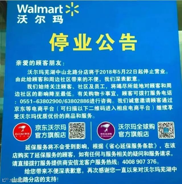 2018年上半年沃尔玛关闭门店16家