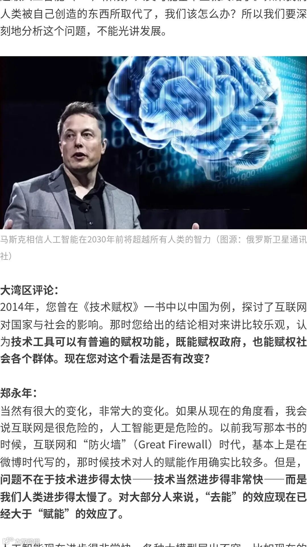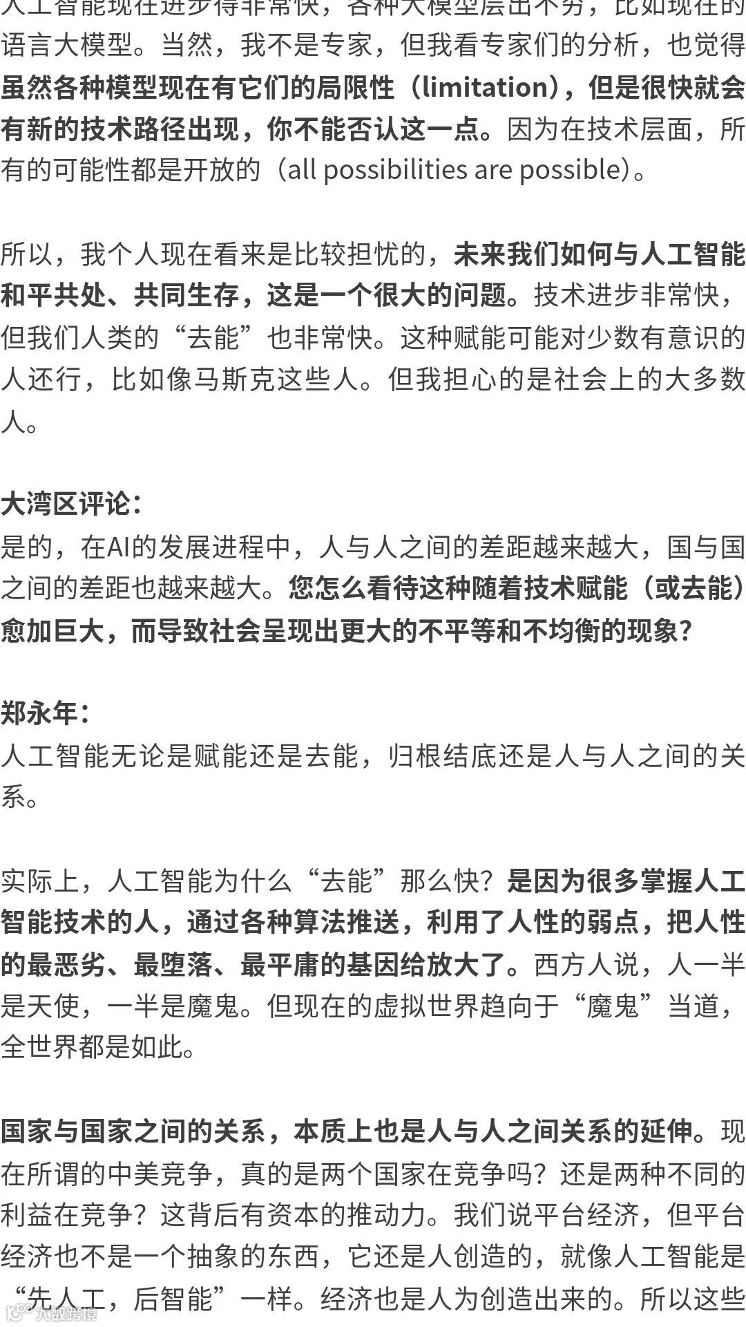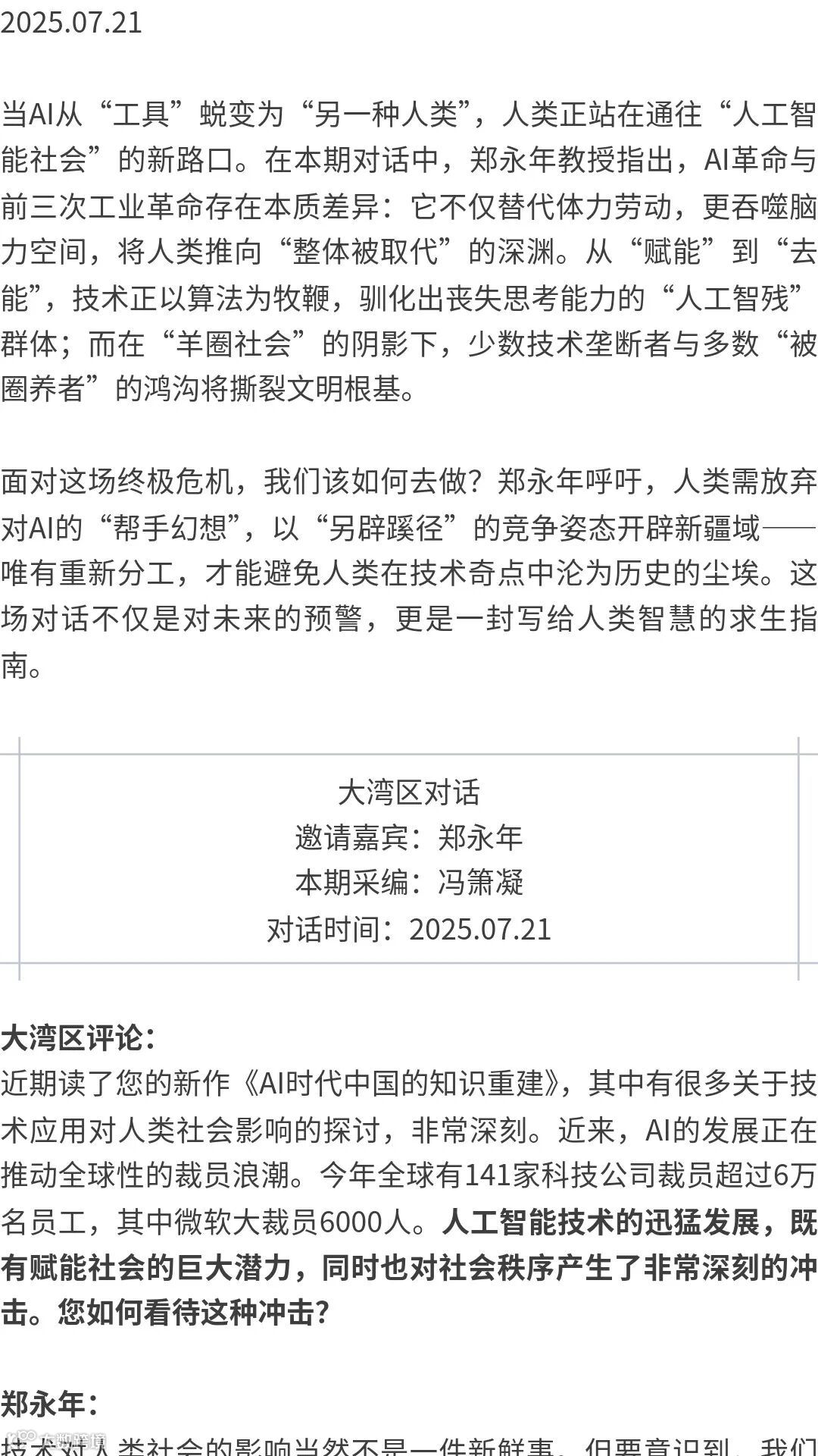 对话郑永年:人类如何避免“整体被AI取代”的危机