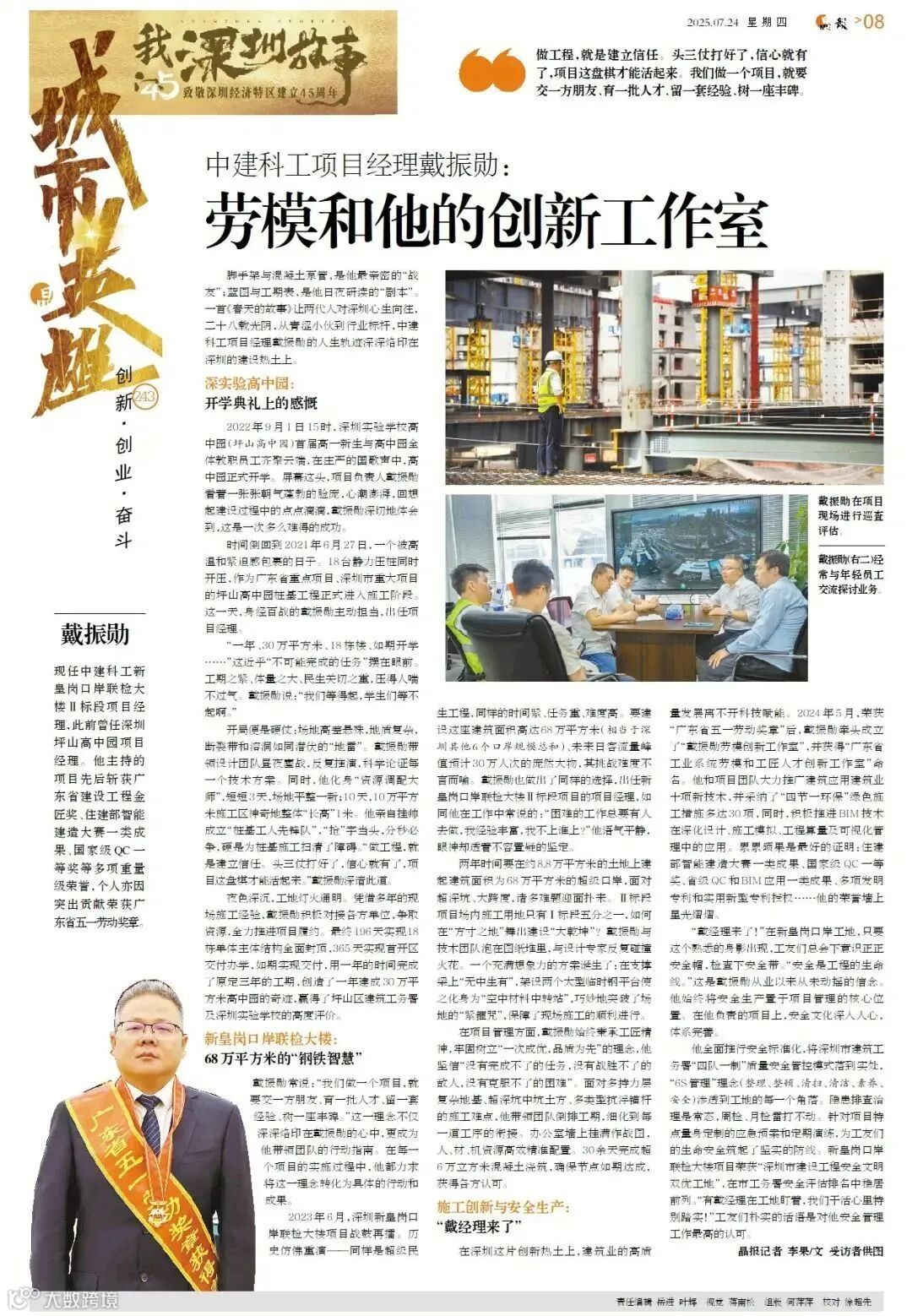 中建科工|《晶报》整版故事:有戴经理盯着,我们干活心里踏实